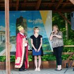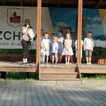 W trakcie pikniku przekazaliśmy paczkę (nadesłaną na nasz adres), a zaadresowaną na Klub Seniora Nasza Chata. Panie i panowie z klubu w pięknych strojach i świetnych humorach z radością odebrali swoją przesyłkę, w zamian wykonali dla nas swój hymn seniora.