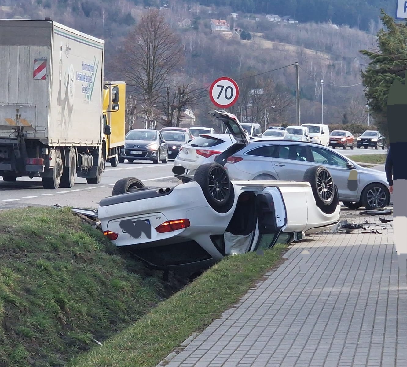Na czas akcji ratunkowej na drodze krajowej nr 75 wprowadzono ruch wahadłowy.