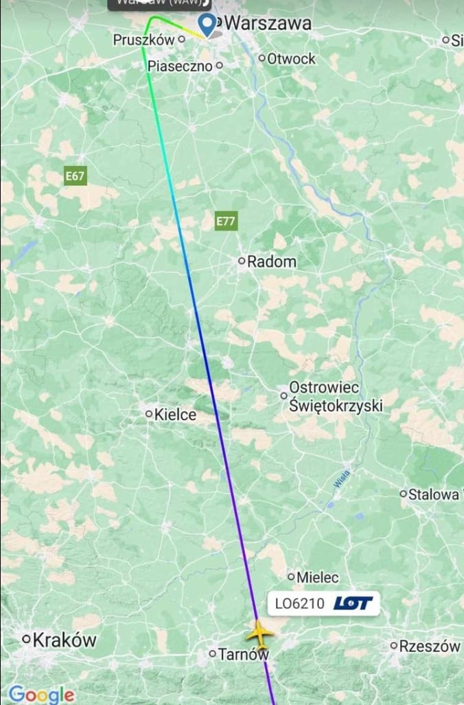 Warszawa znad Tarnowa z wysokości przelotowej – LO6210.