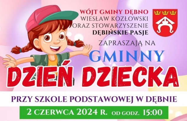 Już w najbliższą niedzielę 2 czerwca 2024 r. o godzinie 15:00 przy Szkole Podstawowej w Dębnie rozpocznie się Rodzinny Dzień Dziecka.