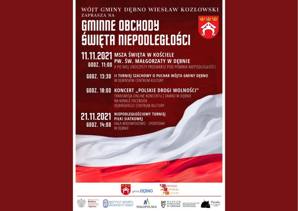 Wójt Gminy Dębno Wiesław Kozłowski serdecznie zaprasza mieszkańców do udziału w lokalnych obchodach Narodowego Święta Niepodległości.