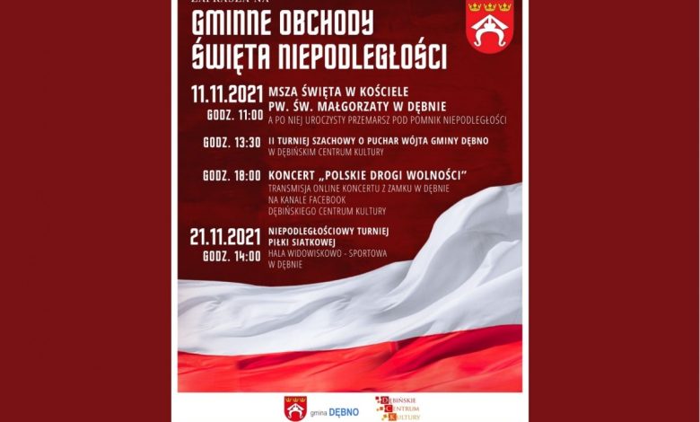 Muzyczny hołd pokoleniom Polaków walczących o Niepodległą Ojczyznę, wybrzmi w koncercie „Polskie Drogi Wolności”. Wystąpią dębińscy artyści, instruktorzy, wokaliści Dębińskiego Centrum Kultury, by w nowych aranżacjach znanych pieśni patriotycznych poprowadzić nas przez historię polskich walk o Niepodległość. Transmisja online tego wydarzenia, z dębińskiego Zamku, rozpocznie się na portalu Facebook Dębińskiego Centrum Kultury o godz. 18:00 w dniu 11 listopada.