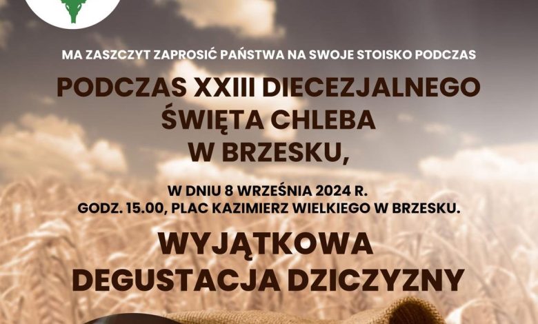Komisja Kultury Tradycji i Promocji Łowiectwa oraz Zarząd Okręgowy Polskiego Związku Łowieckiego w Tarnowie zapraszają mieszkańców na swoje stoisko podczas XXIII Diecezjalnego Święta Chleba w Brzesku.