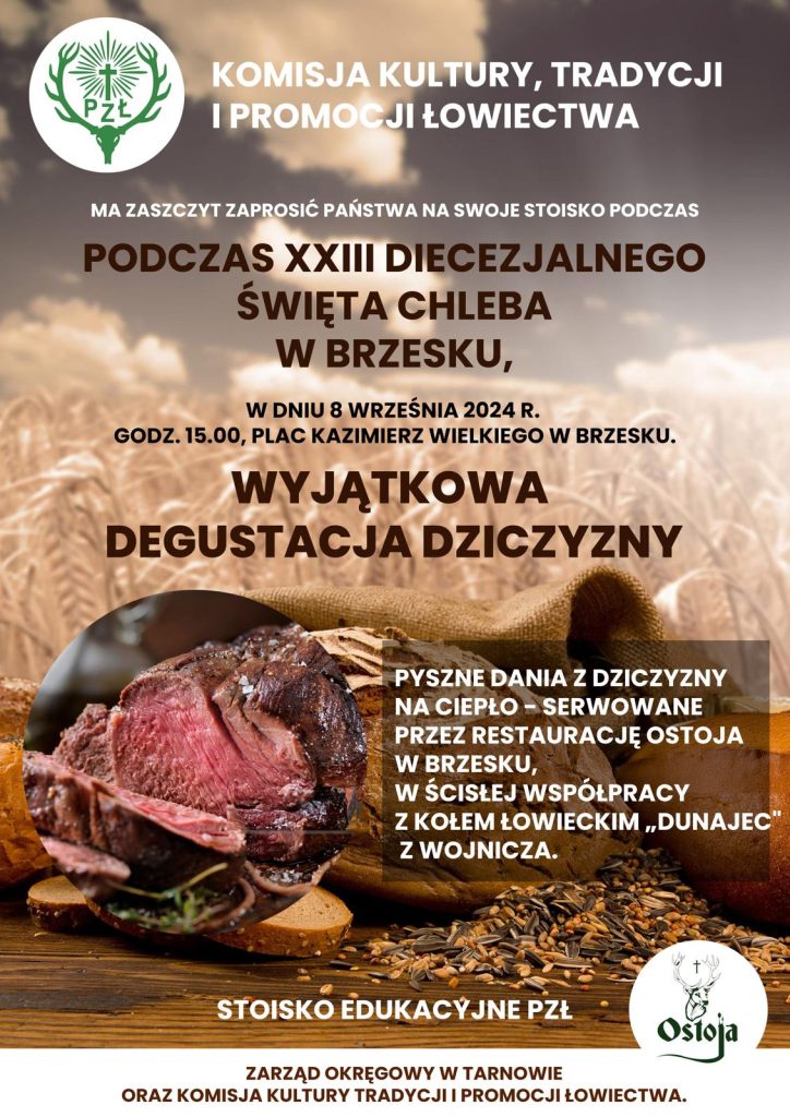 Komisja Kultury Tradycji i Promocji Łowiectwa oraz Zarząd Okręgowy Polskiego Związku Łowieckiego w Tarnowie zapraszają mieszkańców na swoje stoisko podczas XXIII Diecezjalnego Święta Chleba w Brzesku.