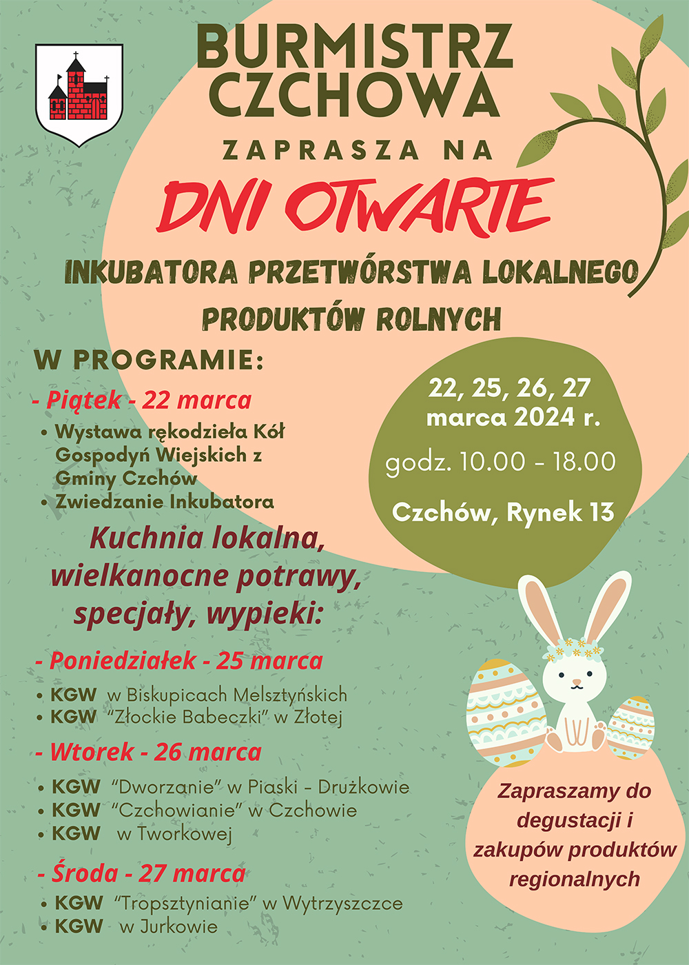 Burmistrz Czchowa oraz Koła Gospodyń Wiejskich z terenu gminy Czchów zapraszają wszystkich gości na „Dni Otwarte” w Inkubatorze Przetwórstwa Lokalnego Produktów Rolnych w Czchowie.