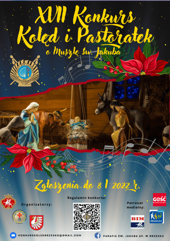 Parafia św. Jakuba w Brzesku organizuje kolejną – siedemnastą edycję Konkursu Kolęd i Pastorałek o Muszlę św. Jakuba. Konkurs odbędzie się w formie hybrydowej, a uczestnicy mają za zadanie nagrać i przesłać swój występ, który oceni komisja konkursowa. Koncert laureatów zaplanowano na ostatni weekend stycznia 2022 r.