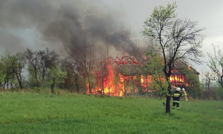 W momencie przybycia służb ratowniczych drewniany budynek był w całości objęty pożarem. Ogień prawie całkowicie zniszczył konstrukcję budynku. Przypuszczalną przyczyną powstania pozaru było uderzenie pioruna.