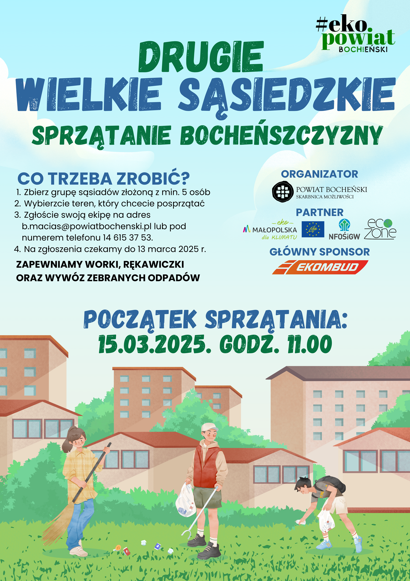 Wraz z nadejściem wiosny coraz wyraźniej dostrzegamy problem zaśmiecenia przestrzeni publicznej. Aby temu zaradzić, ponownie zachęcamy do wspólnego sprzątania i integracji lokalnej społeczności. Ubiegłoroczna edycja spotkała się z dużym entuzjazmem mieszkańców, dlatego wierzymy, że i tym razem wspólnie zmobilizujemy się do działania i zadbamy o nasze otoczenie — zachęca Adam Korta, starosta bocheński
