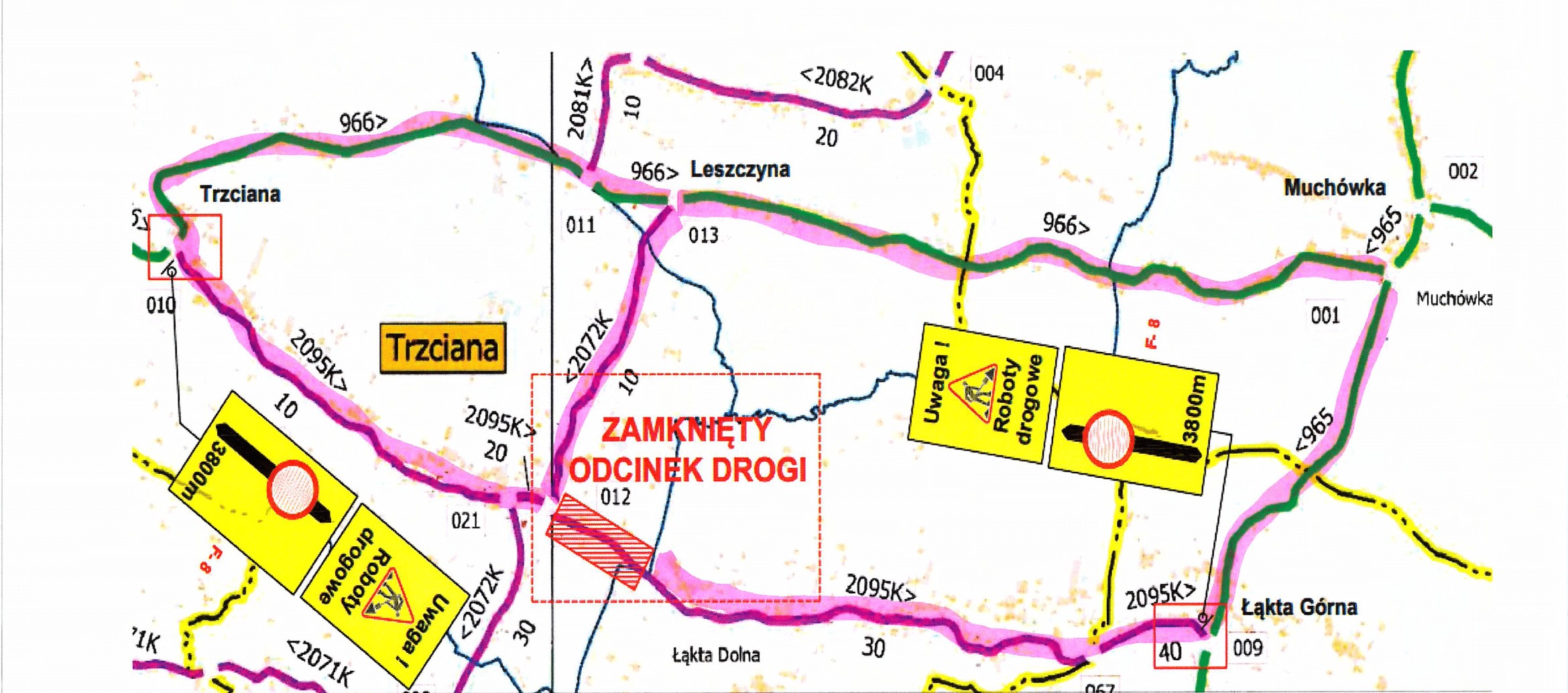 W związku z rozbudową drogi powiatowej nr 2095K Trzcianą – Łąkta Górna w dniach od 25 lipca do 14 sierpnia, odcinek drogi od kościoła w Trzcianie w kierunku Łąkty Górnej na długości około kilometra będzie okresowo zamknięty.