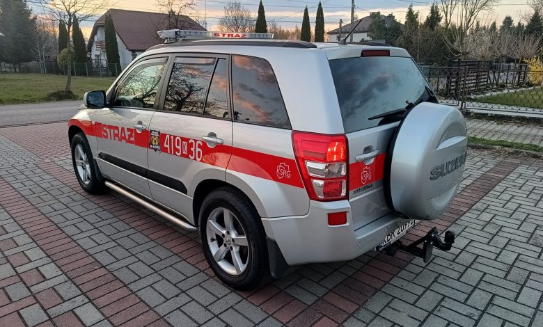 Pojazd marki Suzuki Grand Vitara posiada napęd 4×4 i wyposażony został w m.in. hak holowniczy, sprzęt oświetleniowy, torbę PSP R1, sprzęt łączności, dwie radiostacje przewoźne oraz pozostały sprzęt przewidziany w standardzie wyposażenia samochodu specjalnego typu SLRr.