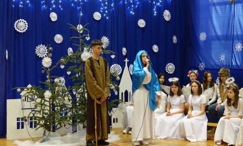 Uczniowie przygotowali przedstawienie jasełkowe, w którym na nowo zinterpretowali historię o narodzinach Jezusa, dostarczając obecnym refleksji na temat uniwersalnych wartości przyświecających każdemu chrześcijaninowi.