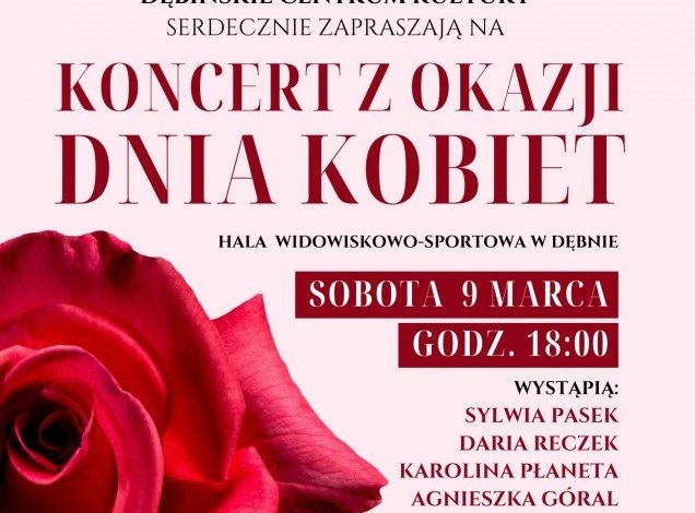 Wójt Gminy Dębno Wiesław Kozłowski oraz Dębińskie Centrum Kultury zapraszają na wyjątkowy koncert z okazji Dnia Kobiet.