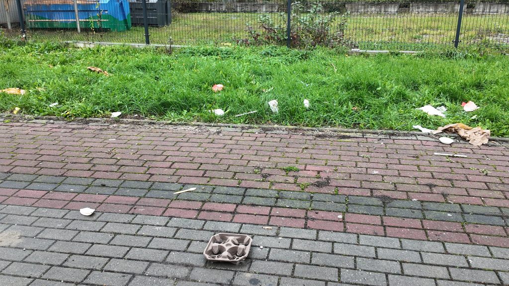 Ten fragment ulicy to ulubione miejsce kierowców chcących zjeść jedzenie co dopiero zakupione w jednej z sieci fastfood jedzenie. Rozumiemy to – nie ma nic gorszego niż niesmaczne, zimne frytki… Niestety ale śmieci zamiast jechać z nimi do domu i tam trafiać do kosza, są zwyczajnie wyrzucane przez okno.