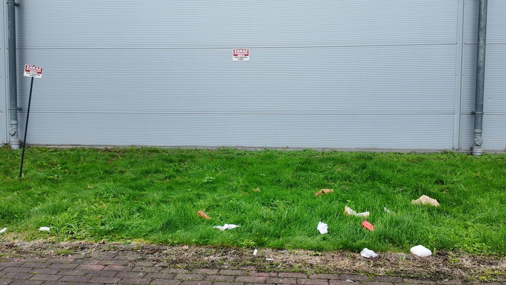 Jak widać po licznie rozmieszczonych tabliczkach z informacją o zakazie wyrzucania śmieci właściciele magazynu mają serdecznie dość bałaganu jaki pozostawiają kierowcy pozbawieni elementarnych podstaw kultury. W innych częściach tej ulicy również właściciele firm często skarżą się na śmiecenie na ich parkingach. jednak jak się okazuje kamery monitoringu potrafią tam skutecznie ograniczać takie zachowania.