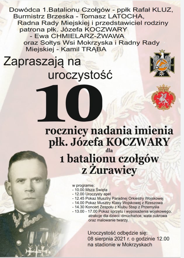 W niedzielę 8 sierpnia 2021 r. w Mokrzyskach-rodzinnej miejscowości pułkownika Józefa Koczwary-patrona 1 batalionowi czołgów 21. Brygady Strzelców Podhalańskich z Żurawicy odbędą się podniosłe uroczystości patriotyczne połączone z piknikiem wojskowym. Organizatorzy zadbali o bogatą oprawę wydarzenia.
