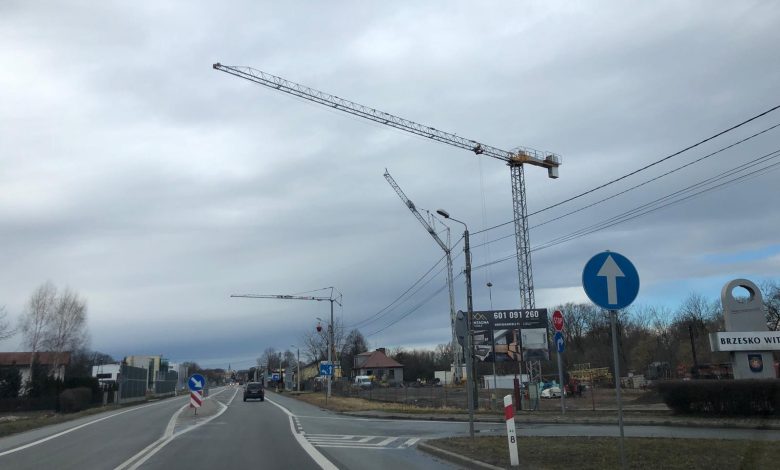 Duże żurawie budowlane to coraz popularniejszy widok na budowach w Brzesku.