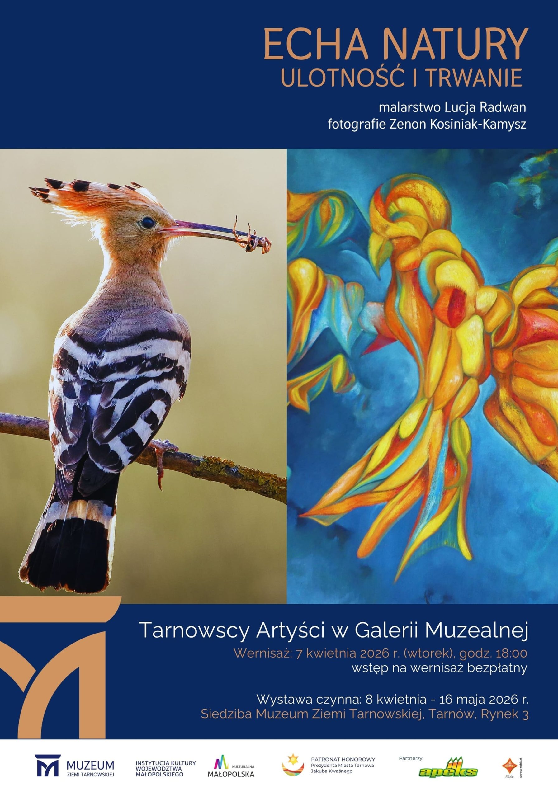 „Echa natury. Ulotność i trwanie – malarstwo Lucja Radwan, fotografie Zenon Kosiniak-Kamysz” – to najnowsza wystawa, która zostanie otwarta we wtorek, 7 kwietnia 2026 r. w siedzibie Muzeum Ziemi Tarnowskiej.