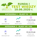 W kategorii klasy IV – VI szkoły podstawowej I miejsce zajęła Szkoła Podstawowa im. Juliusza Słowackiego w Bystrej (powiat gorlicki). Wśród uczniów z grupy starszej (klasy VII-VIII) z testem wiedzy najlepiej poradzili sobie uczniowie Publicznej Szkoły Podstawowej im. Bł. Ks. Jerzego Popiełuszki w Nieczajnej Górnej (powiat dąbrowski).