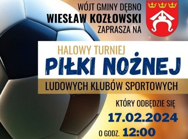 Wójt Gminy Dębno zaprasza na sportowe zmagania Ludowych Klubów Sportowych, które odbędą się w sobotę 17 lutego 2024 od godziny 12.00 w Hali Widowiskowo – Sportowej w Dębnie.