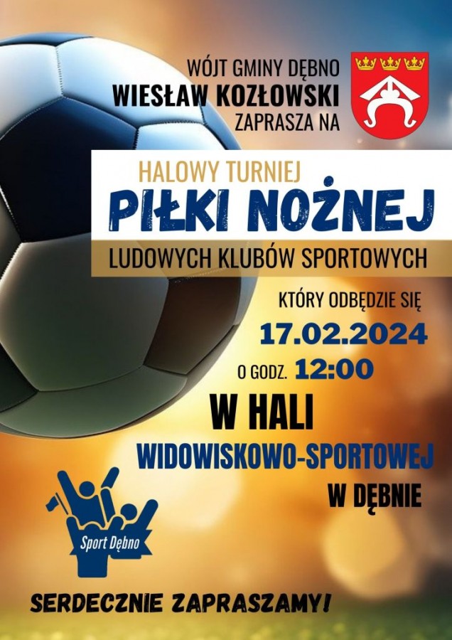 Wójt Gminy Dębno zaprasza na sportowe zmagania Ludowych Klubów Sportowych, które odbędą się w sobotę 17 lutego 2024 od godziny 12.00 w Hali Widowiskowo – Sportowej w Dębnie.