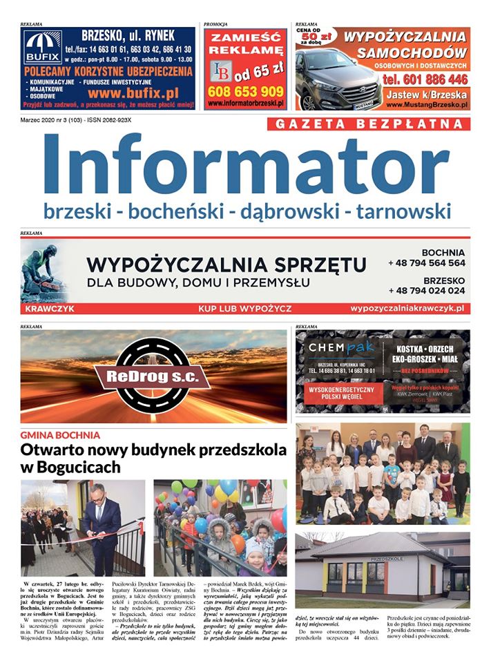 Niestety ze względu na panującą epidemię koronawirusa marcowe wydanie gazety INFORMATOR BRZESKI będzie dostępne tylko w formie w formie elektronicznej. To wyraz naszej odpowiedzialności i troski wobec czytelników oraz pracowników redakcji.