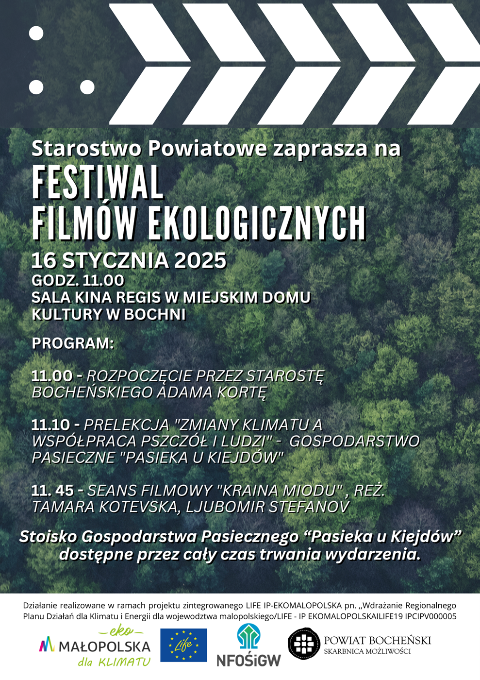 Już w czwartek, 16 stycznia, w Powiecie Bocheńskim odbędzie się inauguracja Festiwalu Filmów Ekologicznych, nowej inicjatywy organizowanej przez Starostwo Powiatowe w Bochni. To premierowe wydarzenie rozpoczyna cykl spotkań mających na celu popularyzację wiedzy o ochronie środowiska i klimacie.