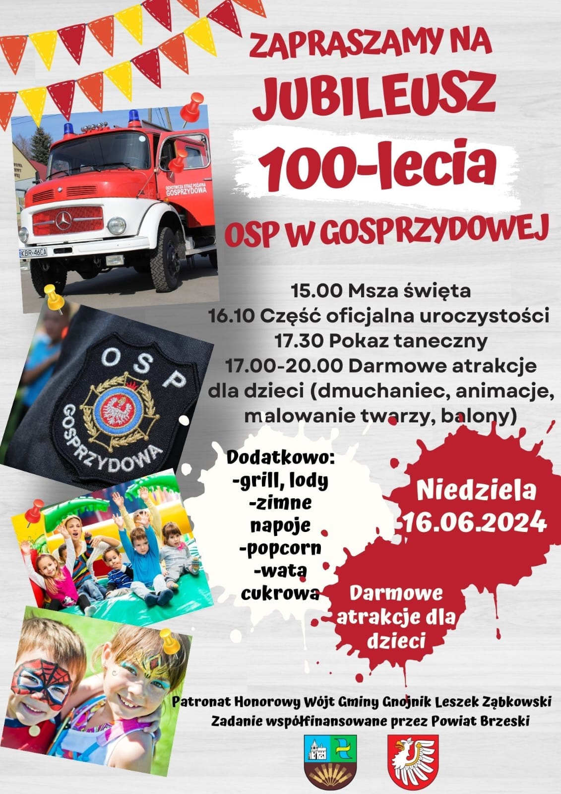 Z okazji tak pięknej rocznicy w niedzielę 16 czerwca 2024 r. strażacy z Gosprzydowej serdecznie zapraszają mieszkańców na uroczystość 100 lecia powstania jednostki Ochotniczej Straży Pożarnej w Gosprzydowej. Z tej okazji oprócz oficjalnych uroczystości odbędzie się festyn.