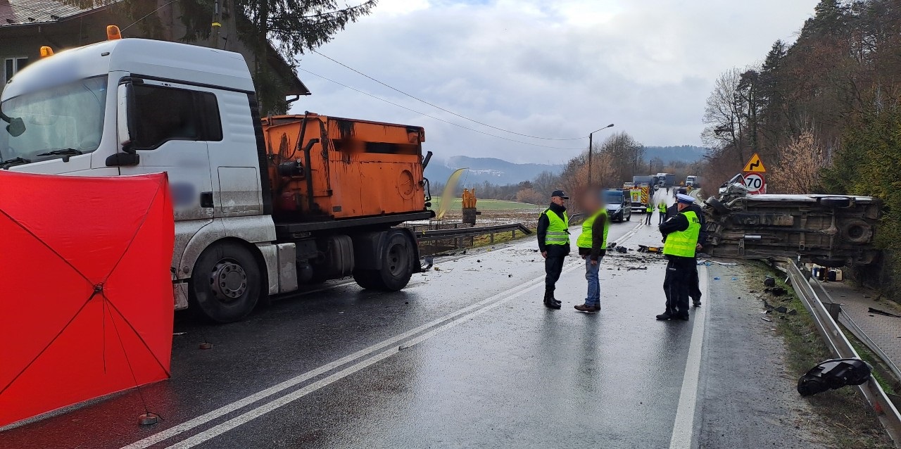 Dwie osoby zginęły, a siedem zostało rannych i trafiło do szpitala – to bilans wypadku drogowego z udziałem trzech pojazdów: ciężarówki, busa osobowego i busa towarowego. Na miejscu zdarzenia pracowali również funkcjonariusze małopolskiej Inspekcji Transportu Drogowego.