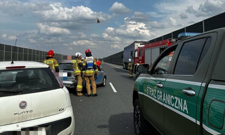 Funkcjonariusze Straży Granicznej udzielali pomocy po karambolu na autostradzie A4 / zdjęcia