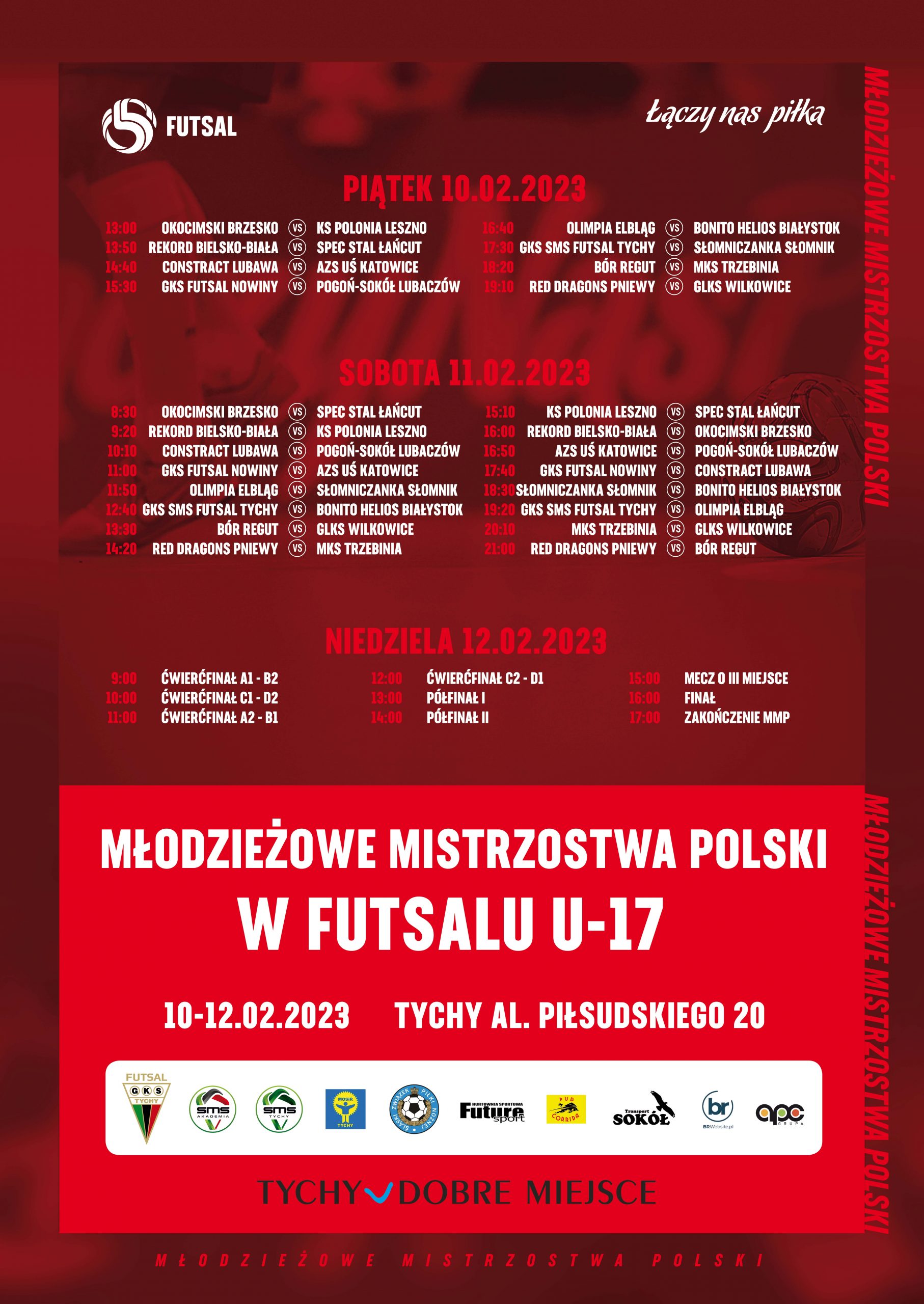 Już w najbliższy piątek w hali sportowej Tychy przy al. Józefa Piłsudskiego 20 wystartuje turniej finałowy o Młodzieżowe Mistrzostwa Polski w Futsalu kategorii U-17 chłopców. Pierwsze mecze zaplanowano o godzinie 13:00 i właśnie wtedy swój mecz rozegrają podopieczni trenera Tomasza Rogóża, którzy zmierzą się z KS Polonia Leszno. W drugim dniu turnieju Okocimski zmierzy się z Spec Stal Łańcut oraz Rekord Bielsko-Biała.