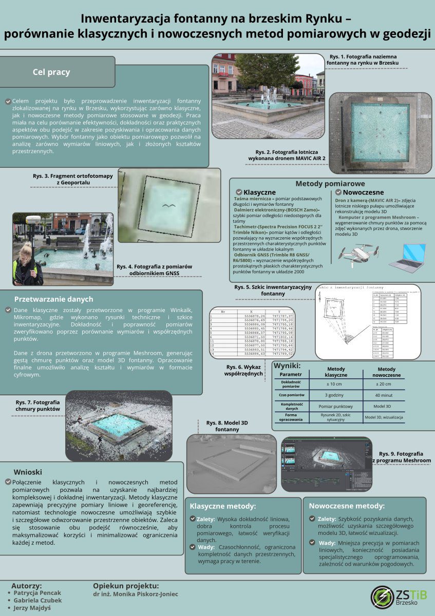 Geodeci z klasy 5TBG: Gabriela Czubek, Patrycja Pencak i Jerzy Majdyś zdobyli III miejsce w ogólnopolskim finale konkursu geodezyjnego „Tradycja kontra nowoczesność”, który odbył się w Branżowym Centrum Umiejętności w Zwierzyńcu. Brzeska drużyna udowodniła, że tradycja i innowacja mogą iść w parze.