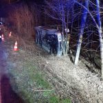 Wg wstępnych informacji nietrzeźwy kierowca nie zapanował nad pojazdem i w konsekwencji samochód wypadł z drogi. W momencie przybycia służb samochód znajdował się na boku.