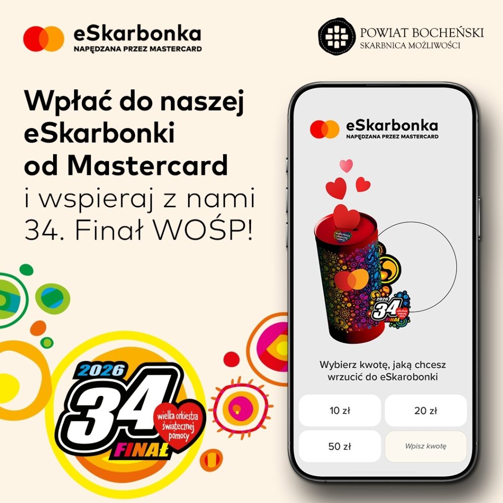 Powiat Bocheński po raz kolejny włącza się w ogólnopolską akcję Wielkiej Orkiestry Świątecznej Pomocy. W ramach 34. Finału WOŚP zachęcamy mieszkańców do wspólnego wsparcia tej wyjątkowej inicjatywy, której celem jest pomoc najmłodszym pacjentom.