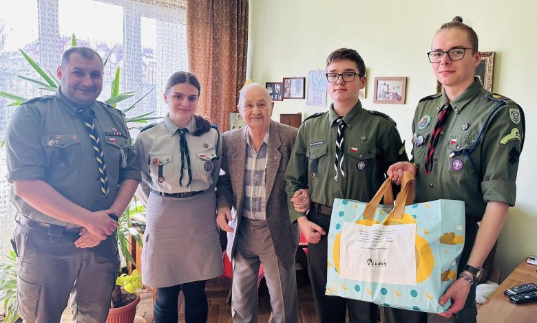 W czwartek 28 marca 2024 r. przedstawiciele Szczepu Czarnego odwiedzili czworo lokalnych Bohaterów, członków brzeskiego koła Światowego Związku Żołnierzy Armii Krajowej by przekazać im zebrane w szczepowej akcji „Koszyk dla Bohatera” produkty spożywcze oraz złożyć świąteczne życzenia.