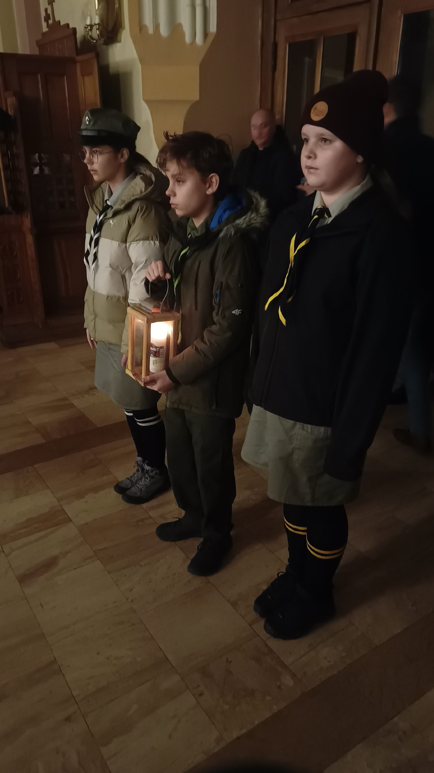 Harcerze przynieśli Betlejemskie Światełko Pokoju do szczepanowskiej bazyliki / zdjęcia i video