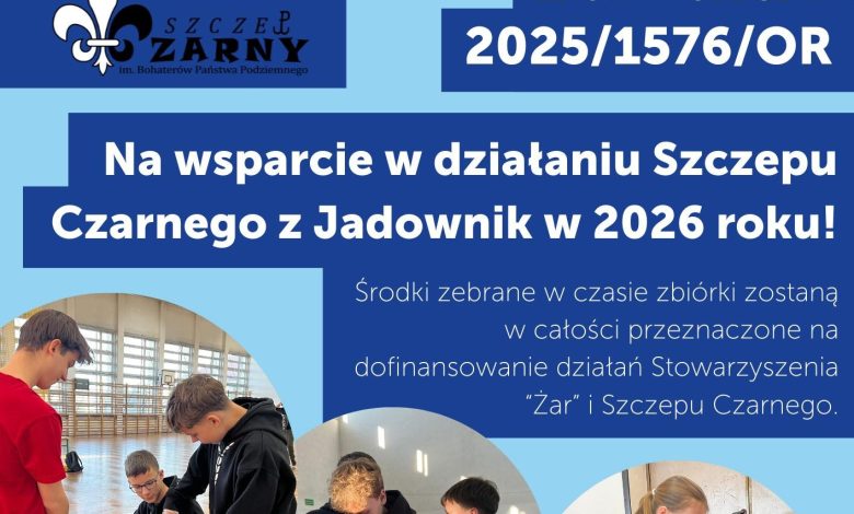 W przedświąteczny weekend, 20–21 grudnia 2025 roku, na terenie Jadownik, Sterkowca i Brzeska prowadzona będzie publiczna zbiórka na rzecz wsparcia działalności harcerzy i zuchów ze Szczepu Czarnego z Jadownik.