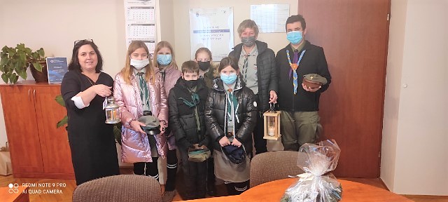 W poniedziałek 20 grudnia 2021 r. przekazali Światło Betlejemskie na ręce Dyrektora szpitala Alicji Syty, która w podziękowaniu poczęstowała Harcerzy słodkościami.