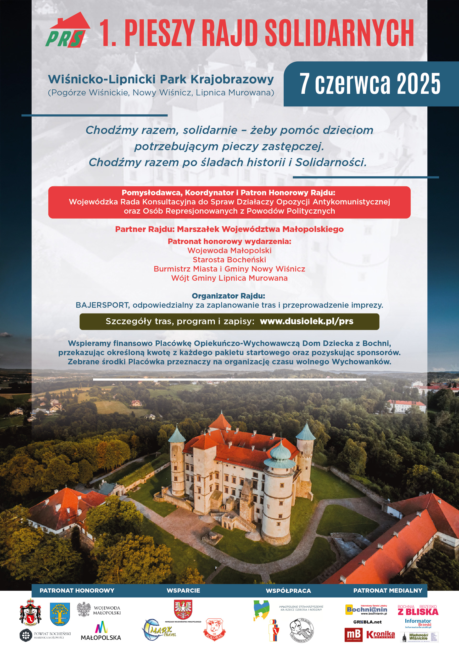 Zapraszamy Państwa do udziału w 1. PIESZYM RAJDZIE SOLIDARNYCH. Spotkajmy się na szlakach Pogórza Wiśnickiego, w miejscach związanych z najnowszą historią, jak Nowy Wiśnicz, gdzie w grudniu 1981 r. internowani byli działacze małopolskiej Solidarności.