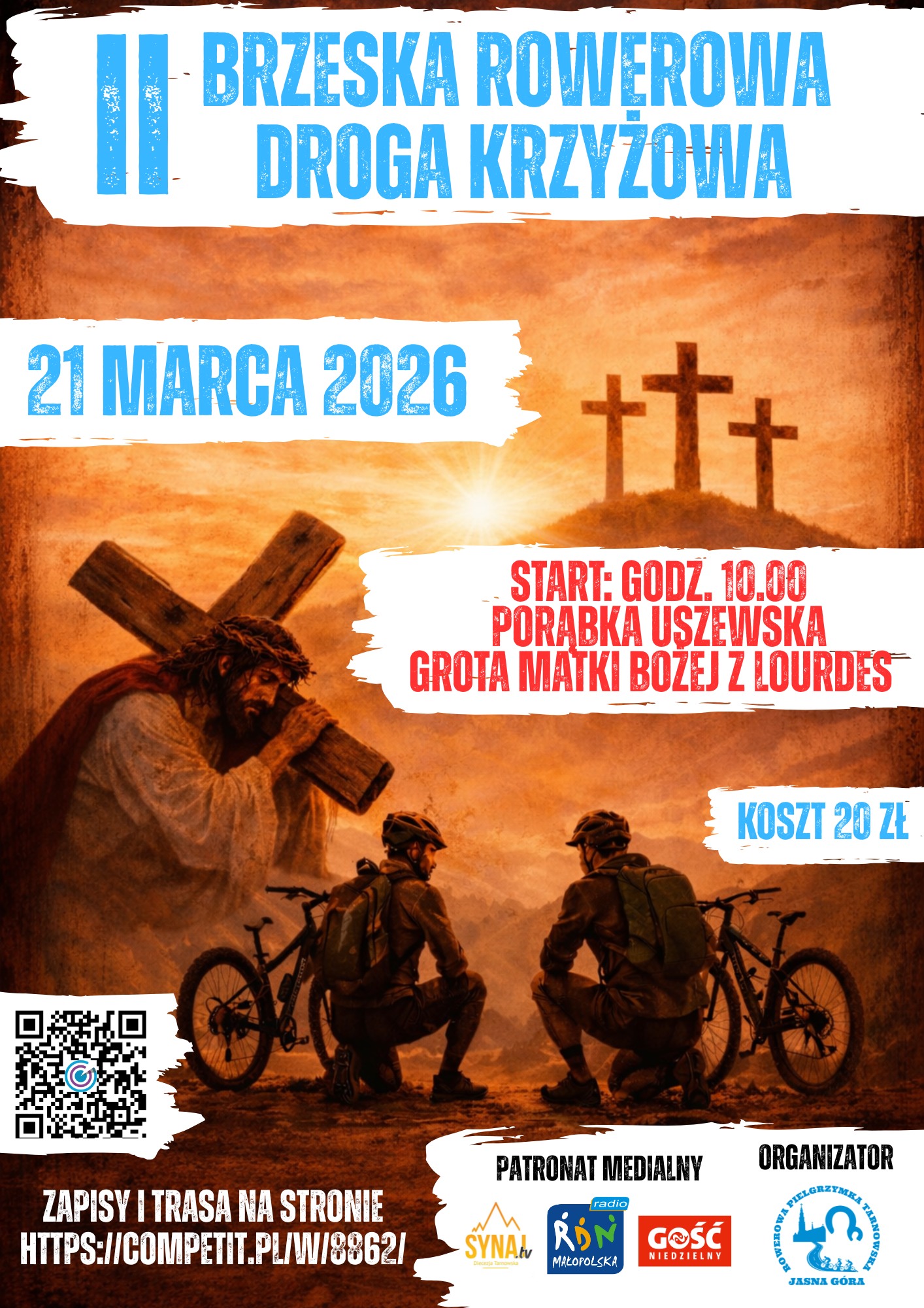 21 marca 2026 r. o godz. 10.00 z Porąbki Uszewskiej wyruszy II Brzeska Rowerowa Droga Krzyżowa. To wspólne pielgrzymowanie ma charakter modlitewny i skupiony – z rozważaniem stacji Drogi Krzyżowej na trasie.