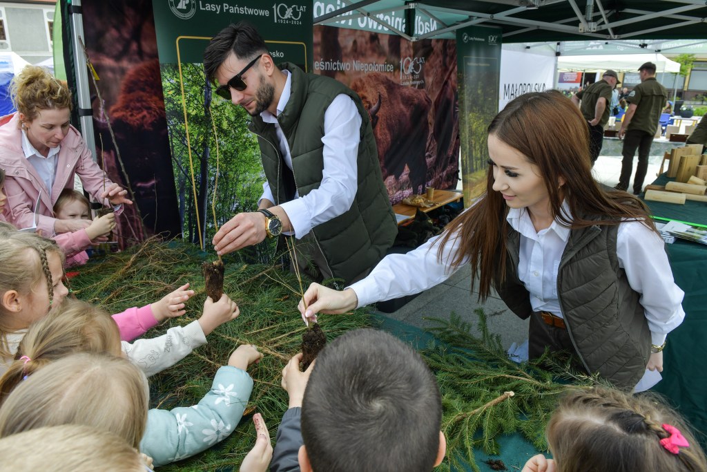 Duże podziękowania należą się uczniom Zespołu Szkół nr 2 w Bochni, którzy już kolejny rok pomagają nam przy rozdawaniu drzewek. W tym roku po raz pierwszy na własnym stanowisku pokazywali tez jak projektować ogrody deszczowe oraz jakie rozwiązania ekologiczne dostępne są w nowoczesnym budownictwie.