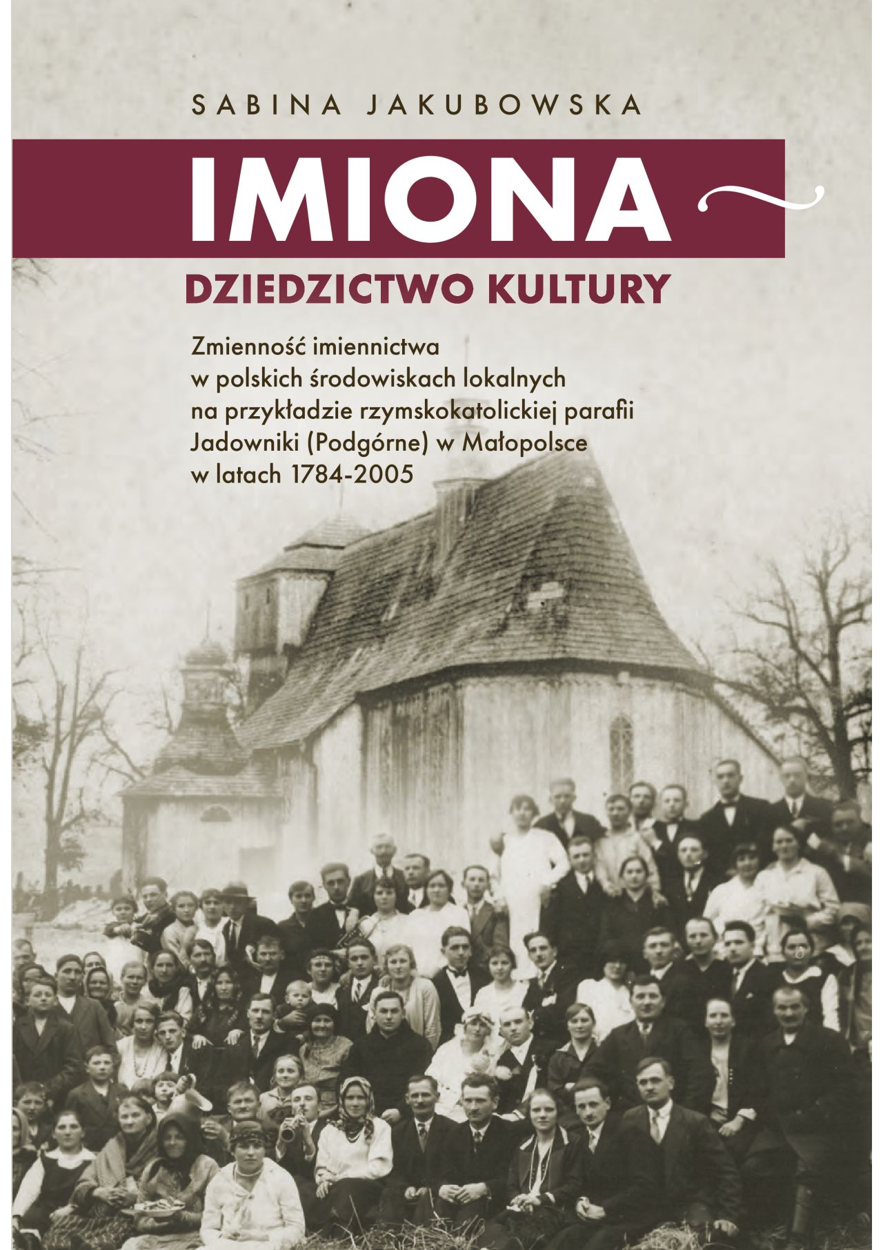 Książka „Imiona – dziedzictwo kultury. Zmienność imiennictwa w polskich środowiskach lokalnych na przykładzie rzymskokatolickiej parafii Jadowniki (Podgórne) w Małopolsce w latach 1784-2005” pozwala spojrzeć w interdyscyplinarny sposób na kwestię motywacji nadawania imion w środowiskach lokalnych. Łączy dogłębną analizę antroponimii jednej miejscowości z historią regionalną i szerokim kontekstem kulturowym. Daje możliwość refleksji nad światem uniwersalnych wartości, towarzyszących ludziom od najdawniejszych czasów, a przy tym nie przestaje być przestrzenią konkretu. Jadowniki – małopolska wieś o długiej historii, obserwowana przez autorkę przez pryzmat nadawanych przez wieki imion, jawi się tutaj jako mikrokosmos, pełen zaskakujących powiązań międzyludzkich i dziejowych, a przecież jest tylko jednym z wielu światów. Ta perspektywa zachęca do sięgnięcia po książkę zarówno historyków, regionalistów, językoznawców czy antropologów, ale także – kimkolwiek jesteś – Ciebie, Czytelniku. Bo słowo, jakim Cię zwą, jest kluczem do Ciebie”.