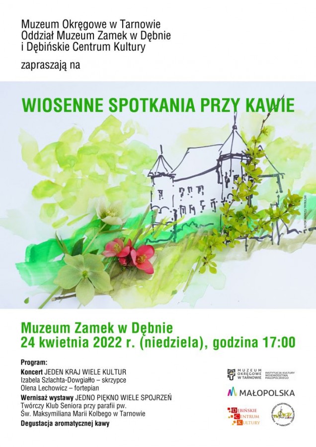 Na początek organizatorzy zapraszają w gościnne progi dębińskiego zamku na „Wiosenne spotkania przy kawie”. W programie wydarzenia znajdą się koncert skrzypcowo – fortepianowy, połączony z wystawą prac Twórczego Klubu Seniora z Tarnowa oraz degustacja aromatycznej kawy…