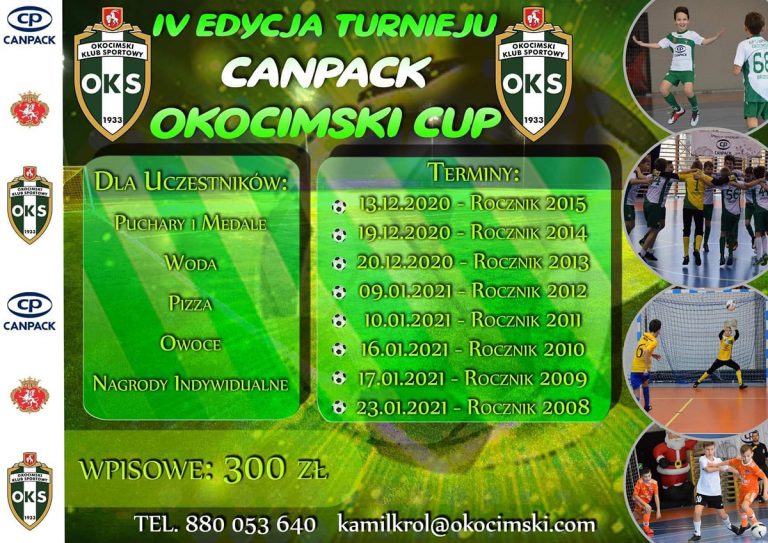 Ruszamy z IV edycją CANPACK Okocimski CUP. Przed nami zmagania w ośmiu kategoriach wiekowych od rocznika 2015 do 2008. Spotkania rozpoczną się od 13 grudnia, wówczas rywalizację podejmie rocznik 2015. Cykl turniejów zakończy się 23 stycznia, gdzie spotkają się drużyny z rocznika 2008.