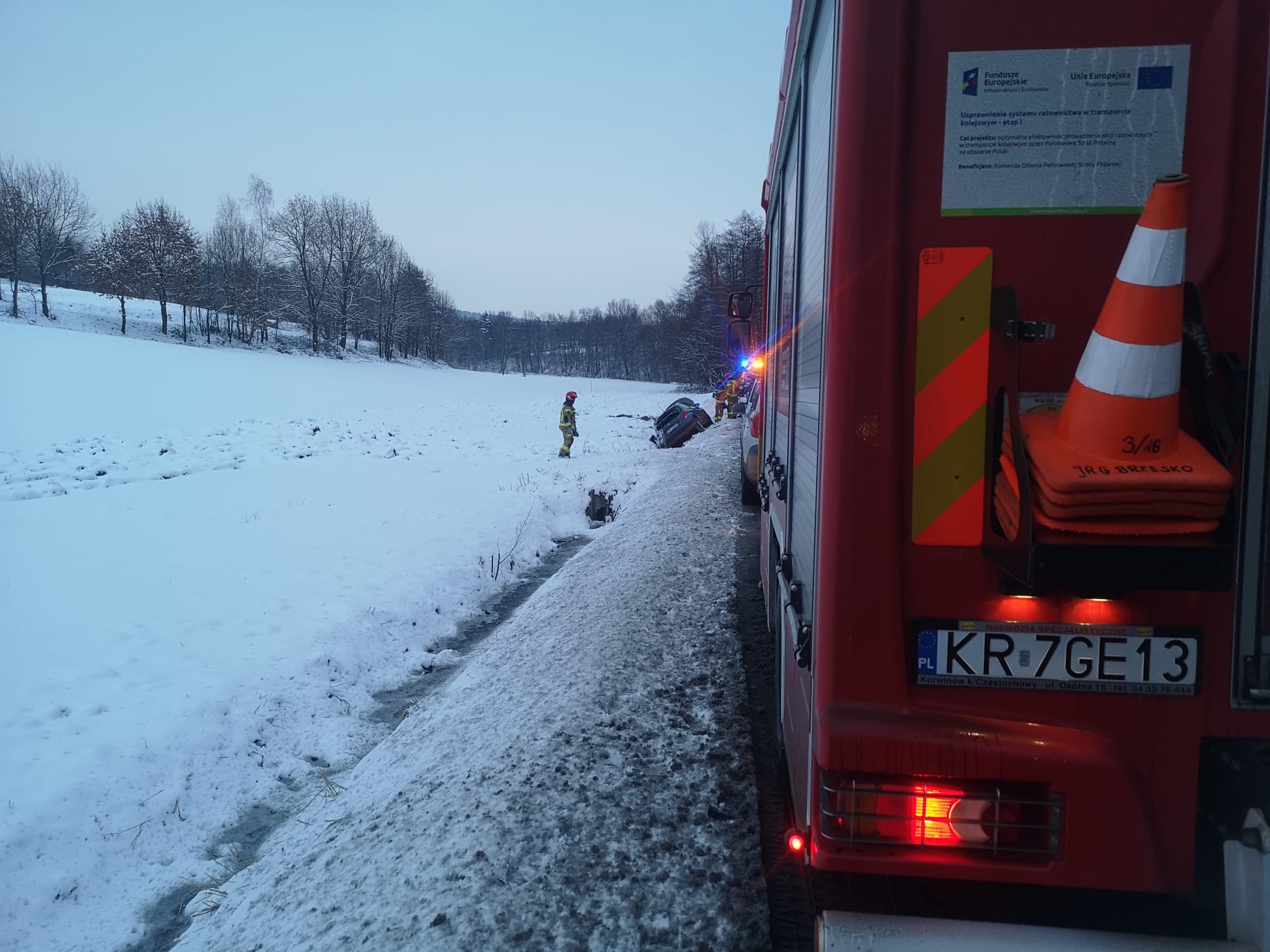 Na miejsce zdarzenia natychmiast zadysponowano zastępy straży pożarnej z JRG Brzesko oraz OSP Iwkowa, a także Zespół Ratownictwa Medycznego i Policję. Działania służb polegały na zabezpieczeniu miejsca zdarzenia, udzieleniu pomocy osobie poszkodowanej oraz wyjaśnieniu okoliczności wypadku.