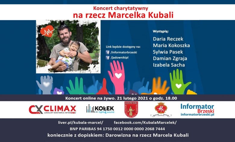 Już dzisiaj tj. w niedzielę 21 lutego 2021 r. o godz. 18.00 zapraszamy na koncert charytatywny dla Marcelka Kubali. Koncert odbędzie się w formule online i będzie transmitowany na naszym kanale facebookowym.