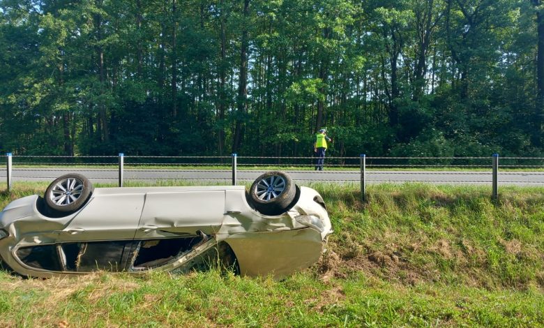 Jadowniki. Zderzenie ciągnika i samochodu osobowego zakończone dachowaniem / 22 czerwca 2023 r.