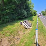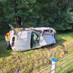 Jadowniki. Zderzenie ciągnika i samochodu osobowego zakończone dachowaniem / 22 czerwca 2023 r.
