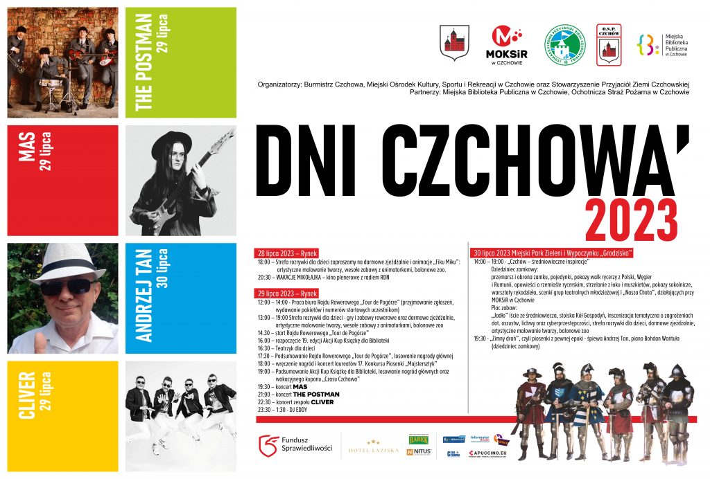 19:00 – Podsumowanie Akcji Kup Książkę dla Biblioteki, losowanie nagród głównych oraz wakacyjnego kuponu „Czasu Czchowa”