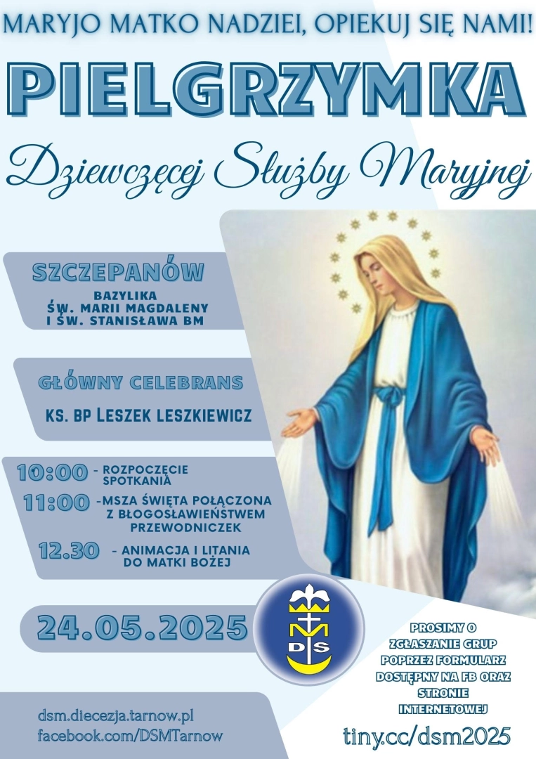 W najbliższa sobotę 24 maja 2025 r. odbędzie się Diecezjalna Pielgrzymka Dziewczęcej Służby Maryjnej. Miejscem spotkania będzie Sanktuarium Św. Stanisława Biskupa i Męczennika w Szczepanowie.