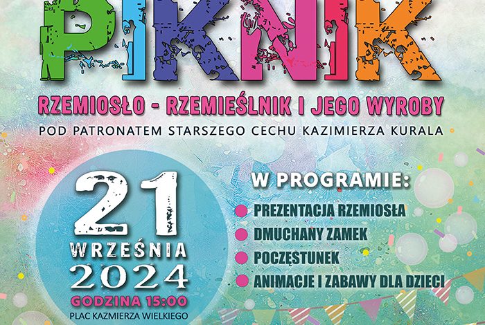 Cech Rzemieślników oraz Małych I Średnich Przedsiębiorców w Brzesku zaprasza na piknik pod hasłem „Rzemiosło – Rzemieślnik i jego wyroby”. Impreza odbędzie się w sobotę 21 września 2024 r. na Placu Kazimierza w Brzesku. Rozpoczęcie o godzinie 15.00.